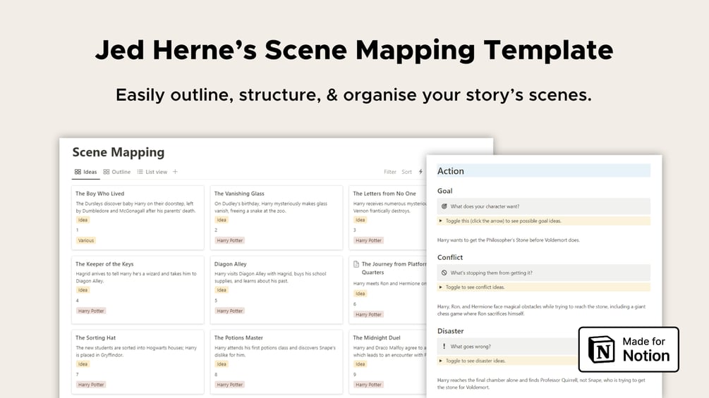 Easily plan, structure, and organise your story's scenes with this Notion template.